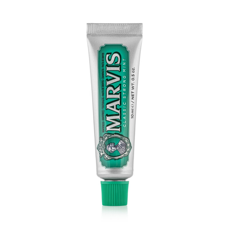 The most classic of Marvis flavors, the most iconic in the world of toothpastes. In Strong Mint, the taste of peppermint leaves an intense and long-lasting freshness, with no limits.